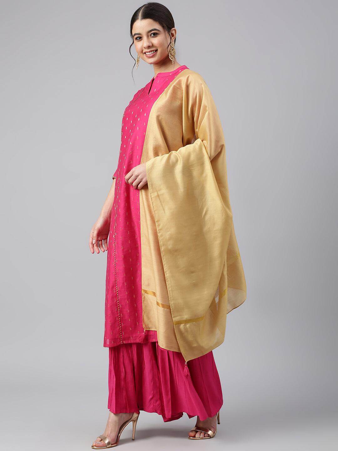 Pink Chanderi Silk Woven Kurta with Sharara and Dupatta
