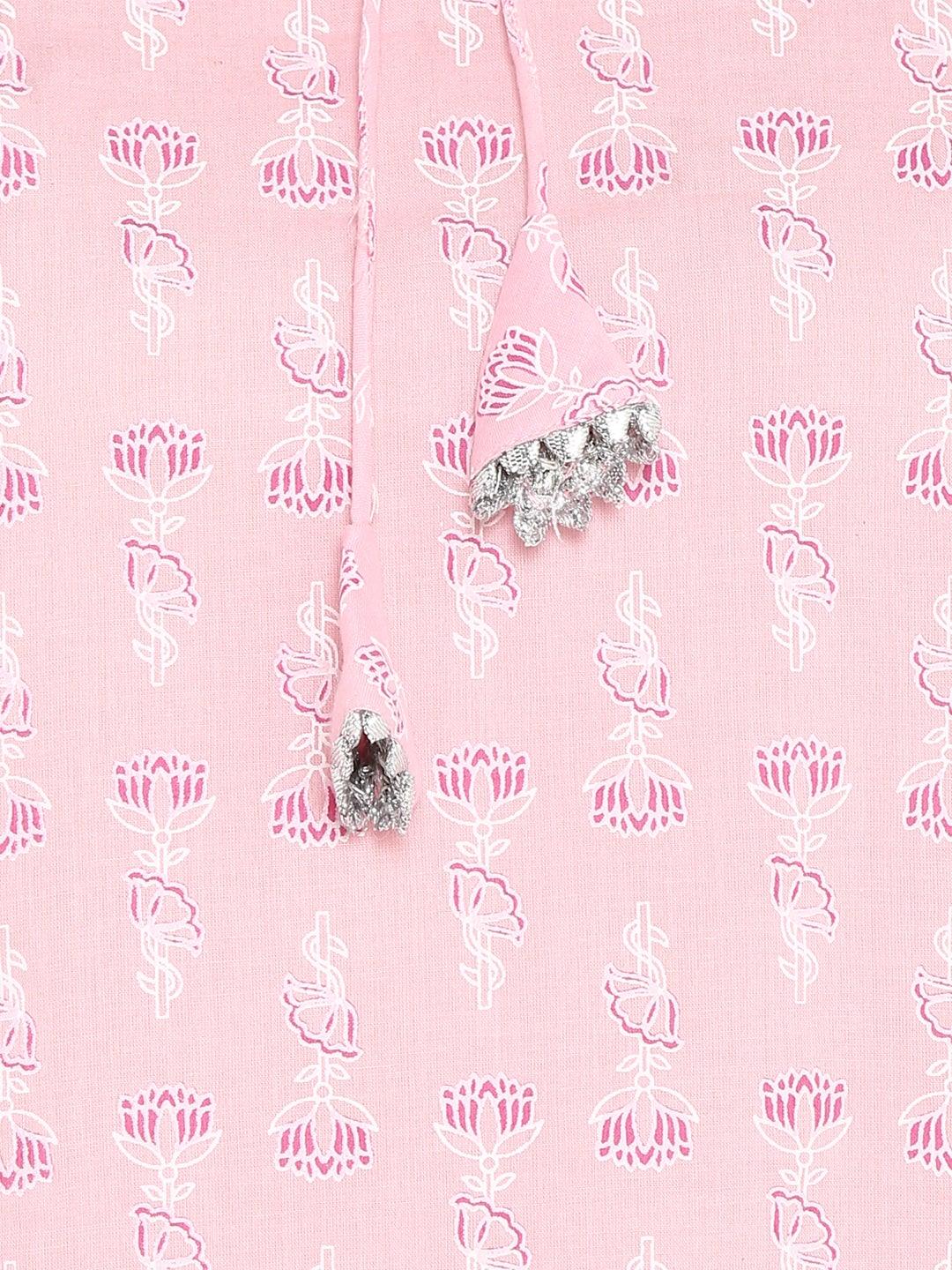 - This stylish floral print kurta from janasya is made of pure cotton and comes in an attractive pink color. It features 3/4 sleeve,keyhole neck,straight and it is calf length kurta that is suitable for casual occasions. Team it with matching leggings for a chic look.