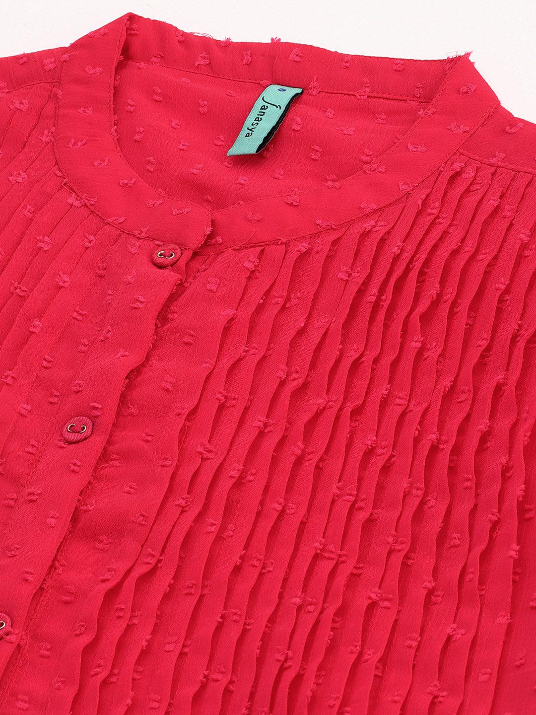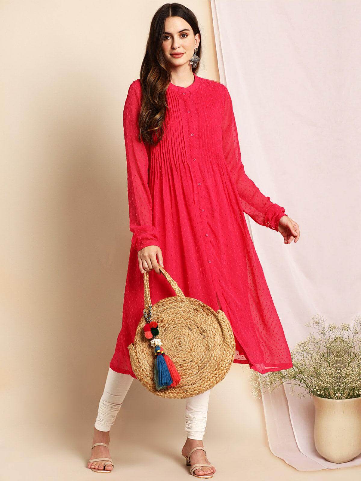 - Style:- Length: 47(inch) | Pattern: Self Design | Occasion: Casual | Type: Frontslit | Sleeve Type: Full Regular Sleeves | Color: Pink