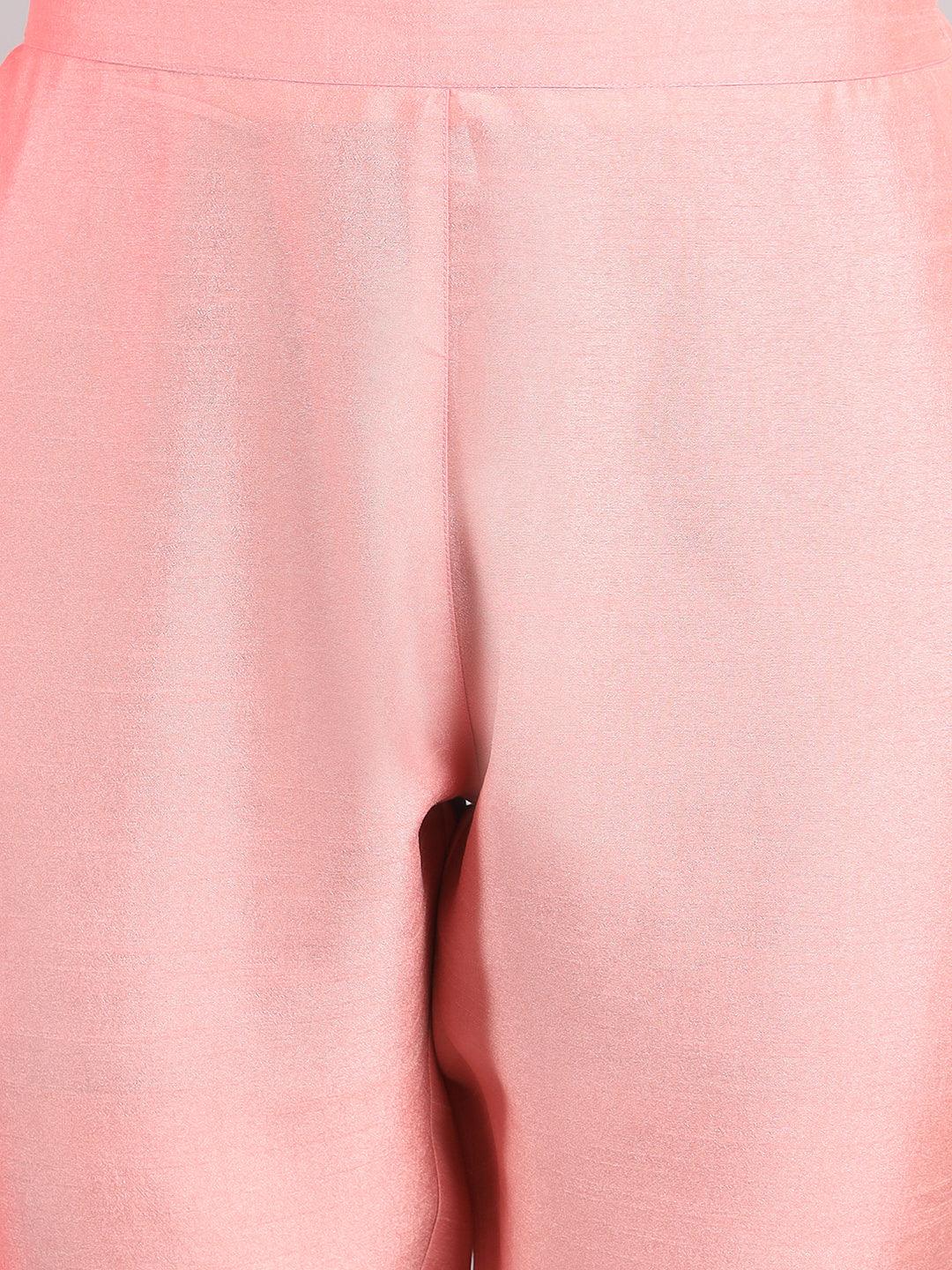 Pink Poly Silk Floral Print Kurta with Pant and Dupatta