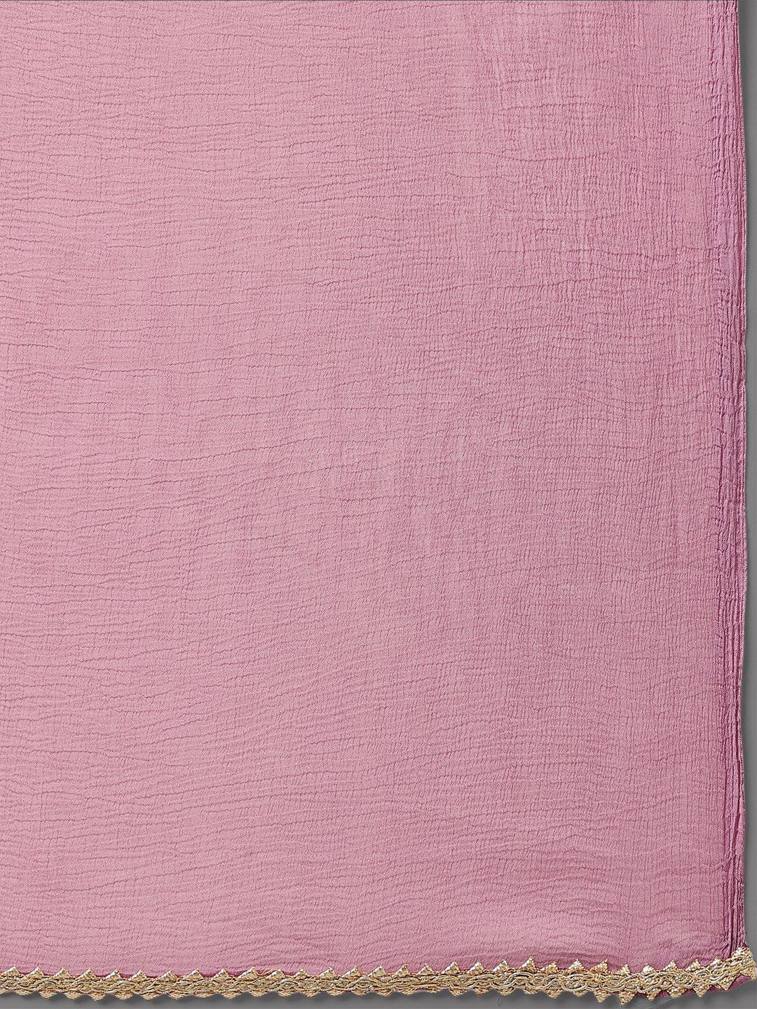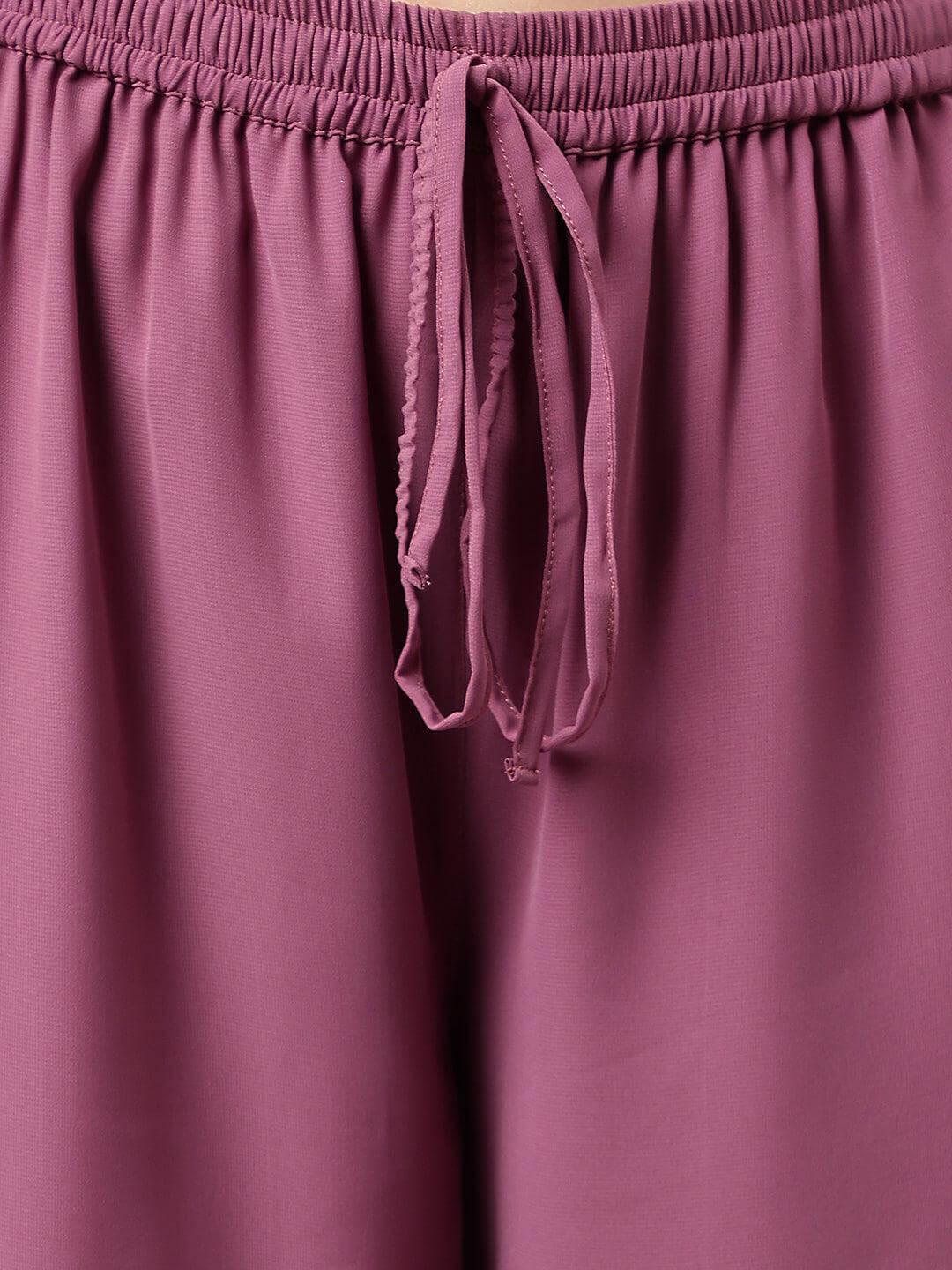 Purple Georgette Foil Print Kurta with Palazzo and Dupatta