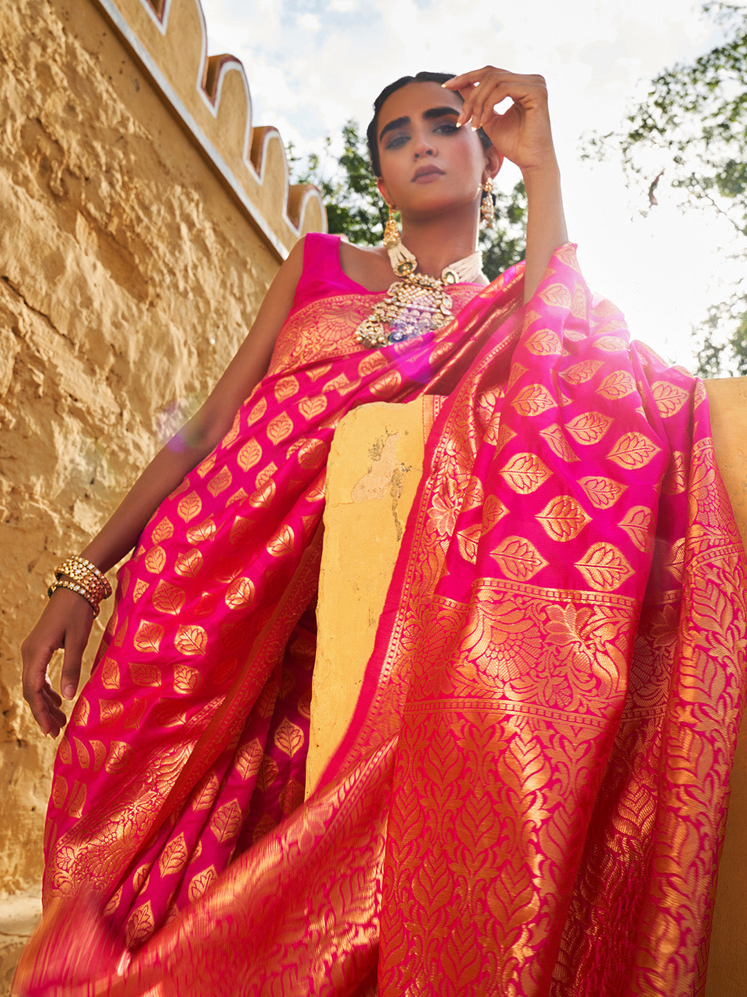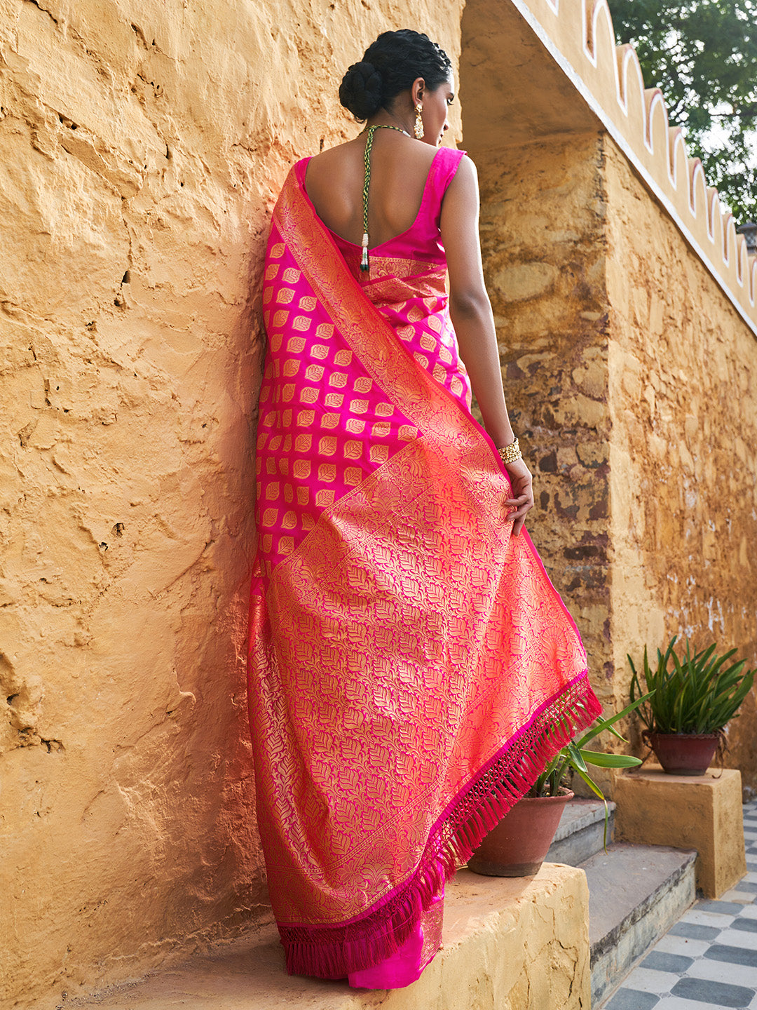 Rani Pink Banarasi Silk Ethnic Motifs Saree with Unstitched Blouse Piece
