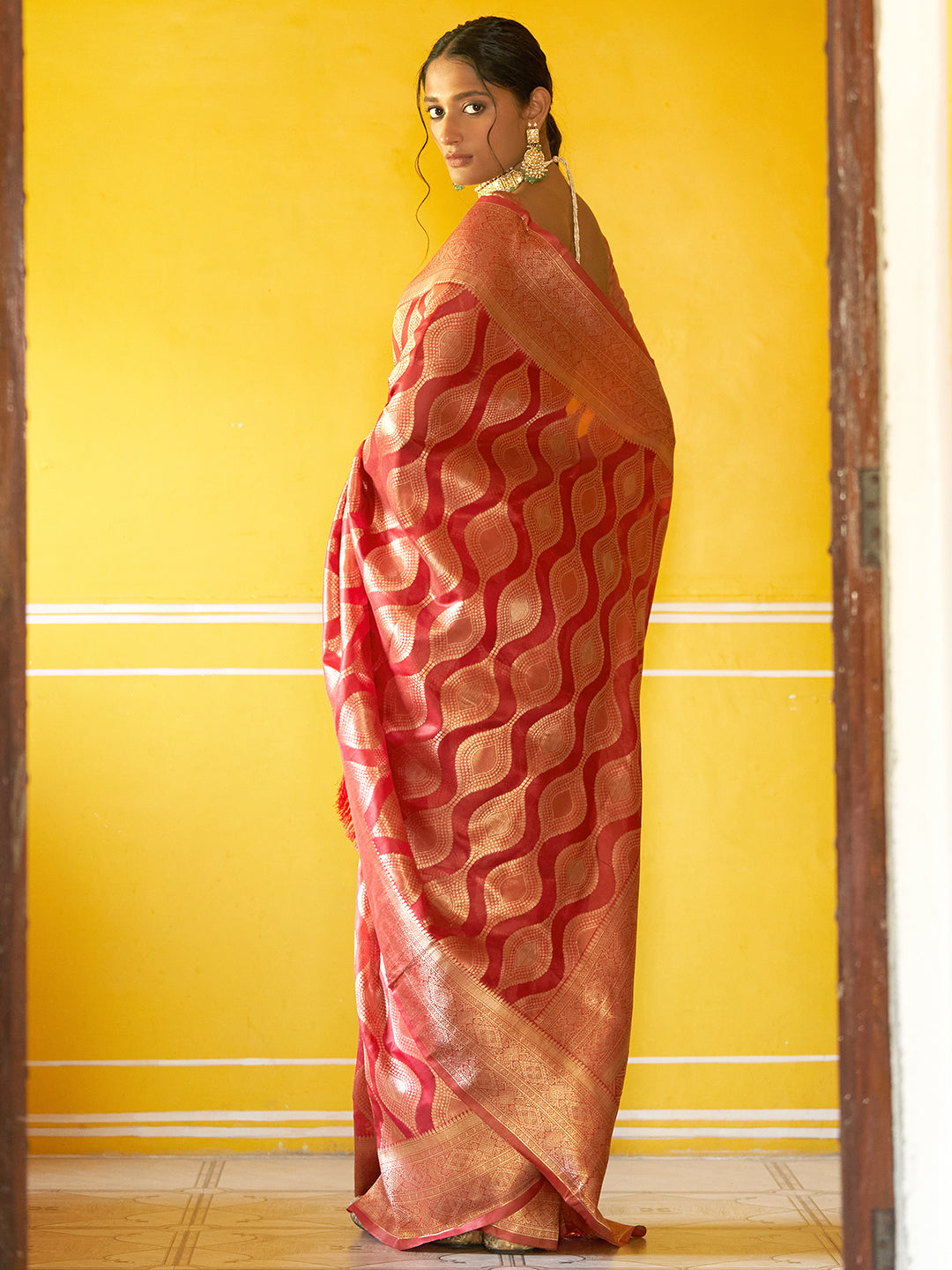 Red Organza Woven Ethnic Motifs Saree with Unstitched Blouse Piece