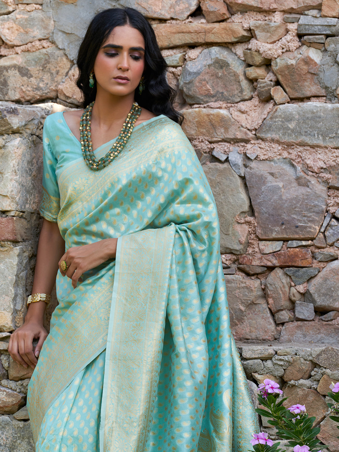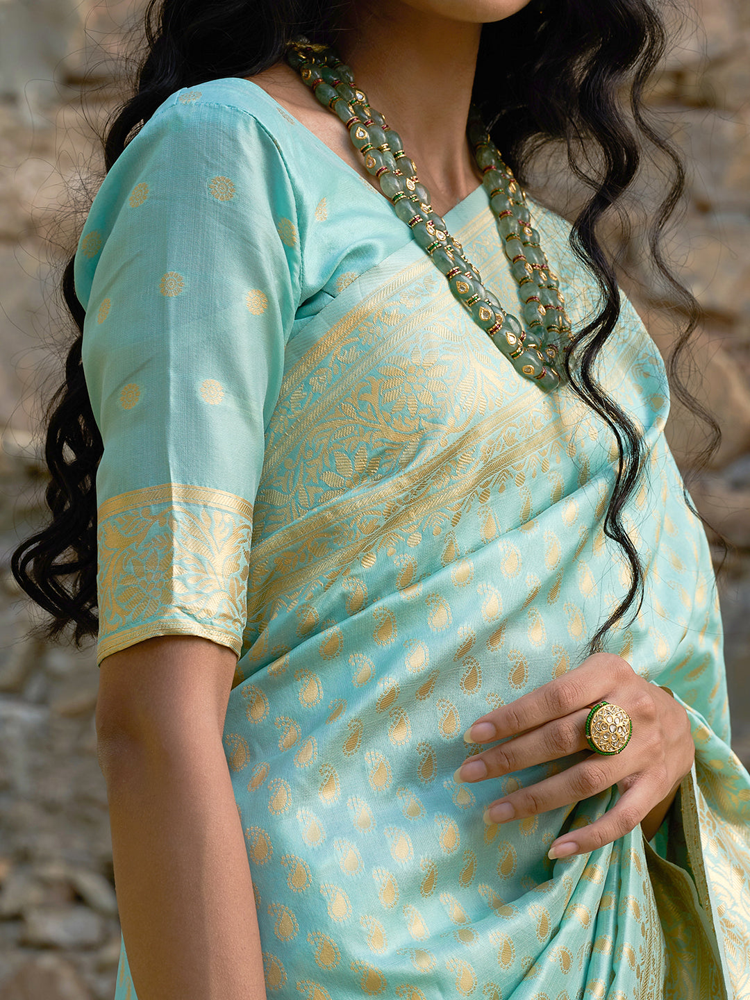 Sea Green Chanderi Silk Paisley Saree with Unstitched Blouse Piece