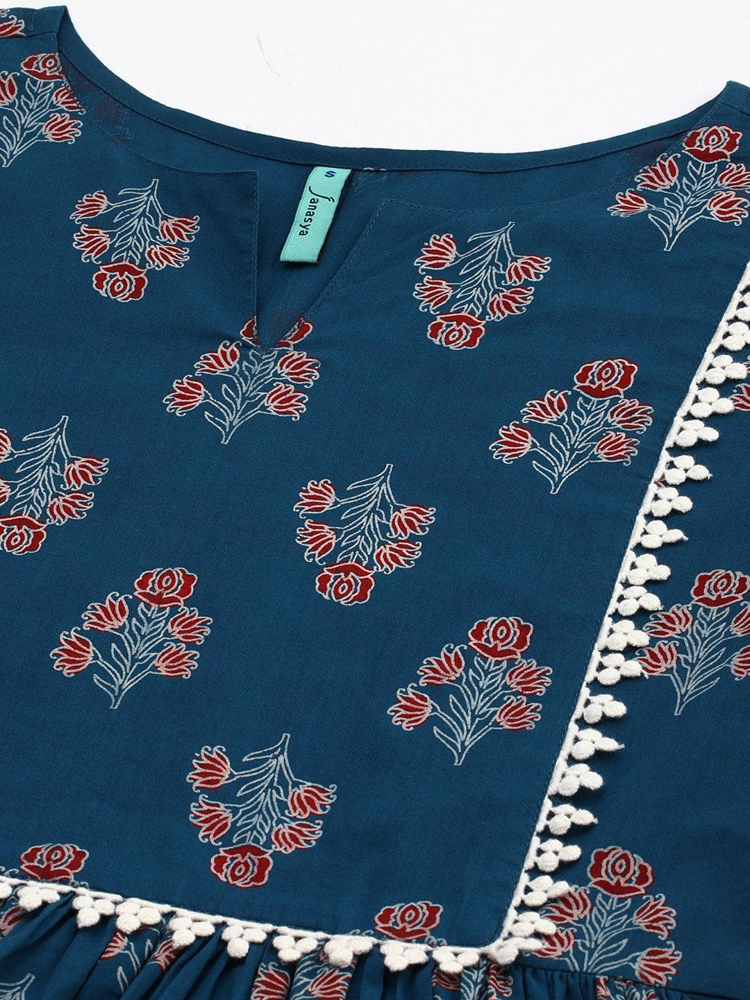 - Revamp your collection with this gorgeous teal kurti from Janasya. It features intricate lace detailing on yoke. This kurti has gathers at the waistline and has 3/4th sleeves This kurti is designed to flaunt the mix of Indian aesthetics with the new era of fashion. Pair it up with your favourite heels and a indian jewellery.