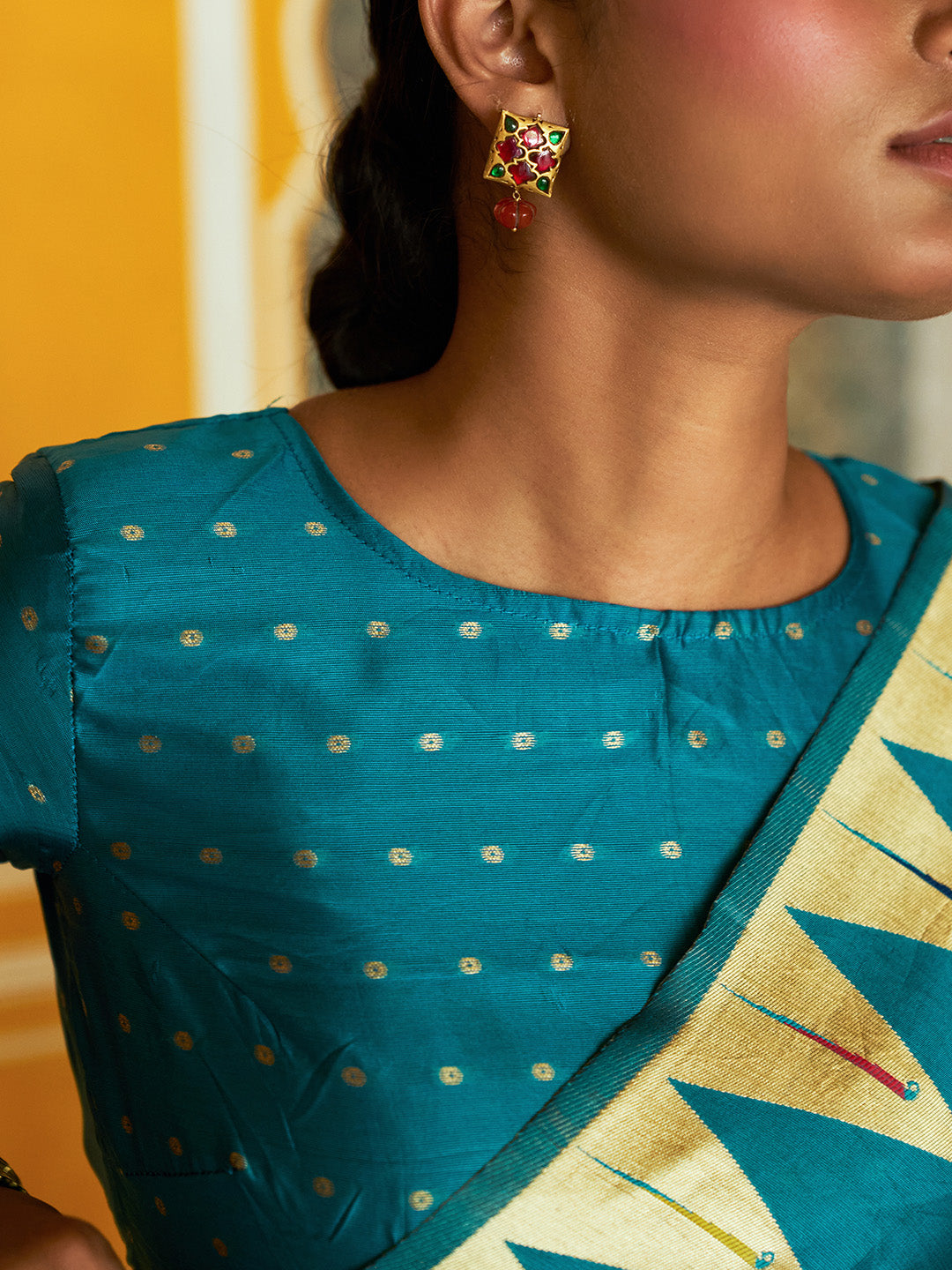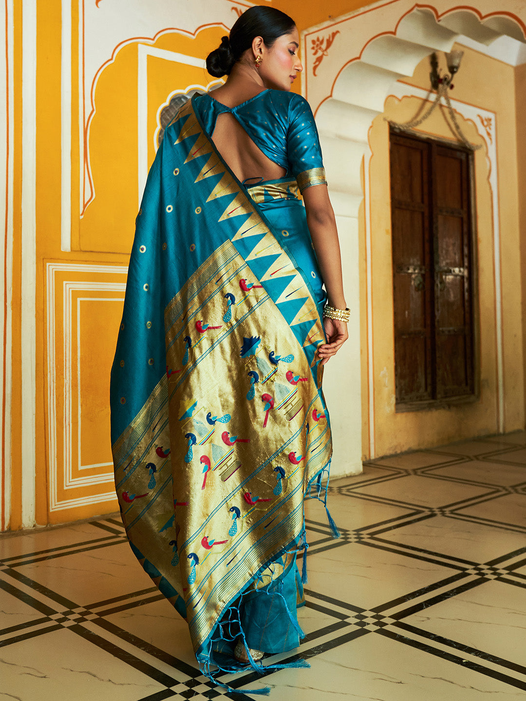 Teal Paithani Silk Ethnic Motifs Saree with Unstitched Blouse Piece