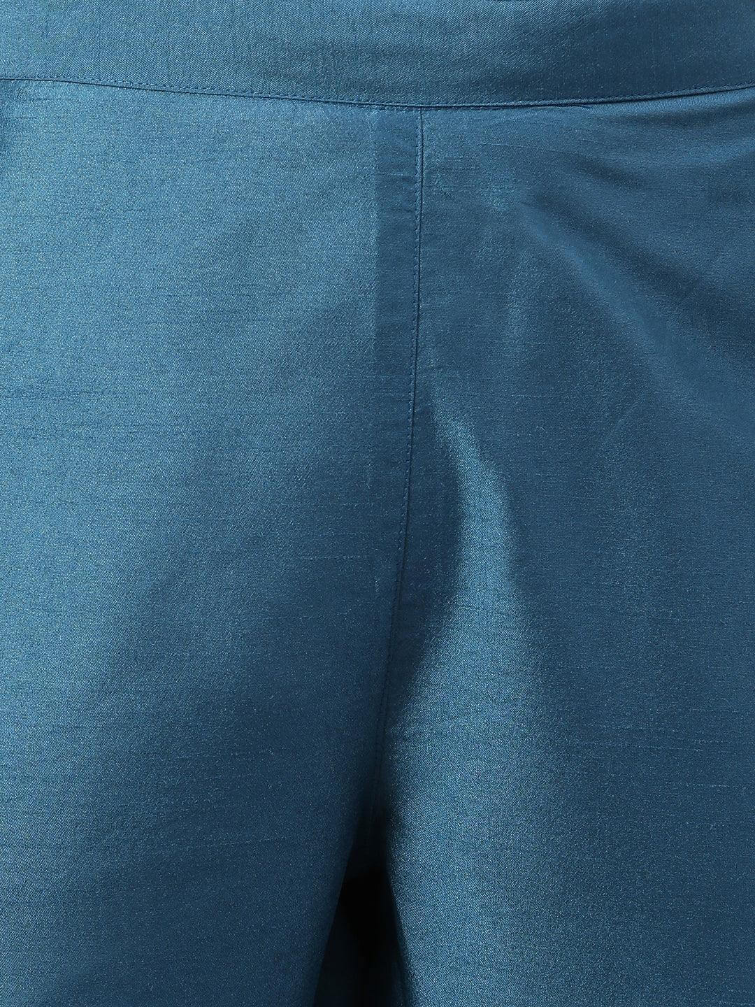 Teal Poly Silk Embellished Kurta with Pant and Dupatta