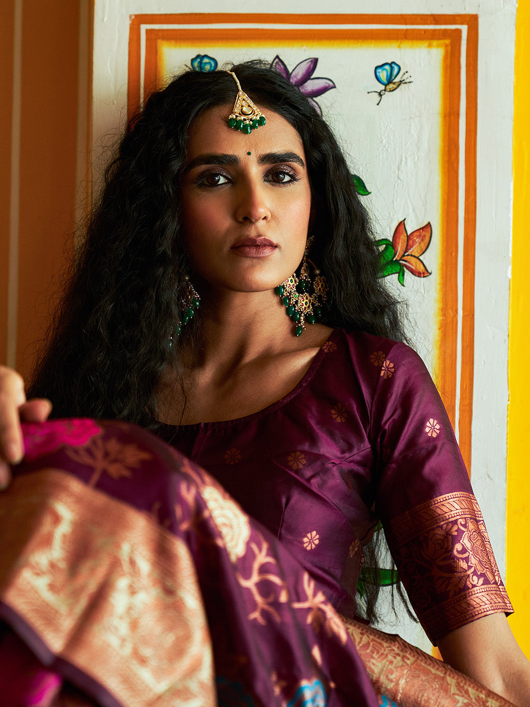 - Saree fabric: Banarasi Silk | Blouse Fabric: Banarasi Silk