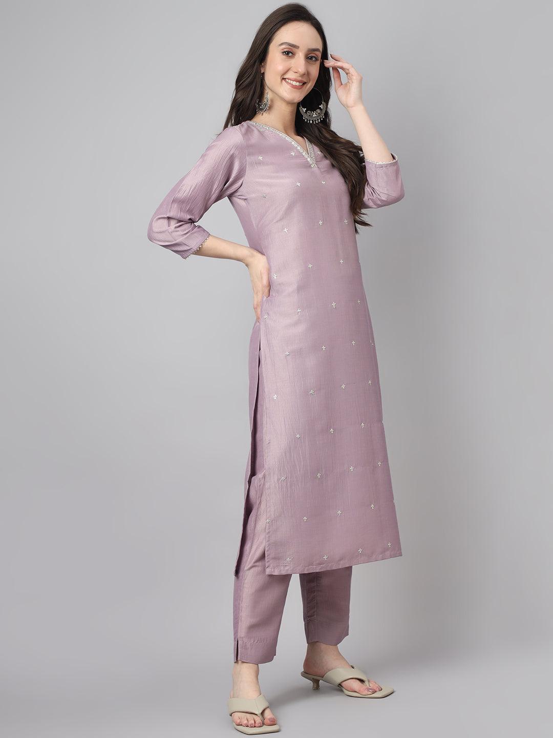 Women's Lavender Chinon Embellished Kurta with Pant and Dupatta