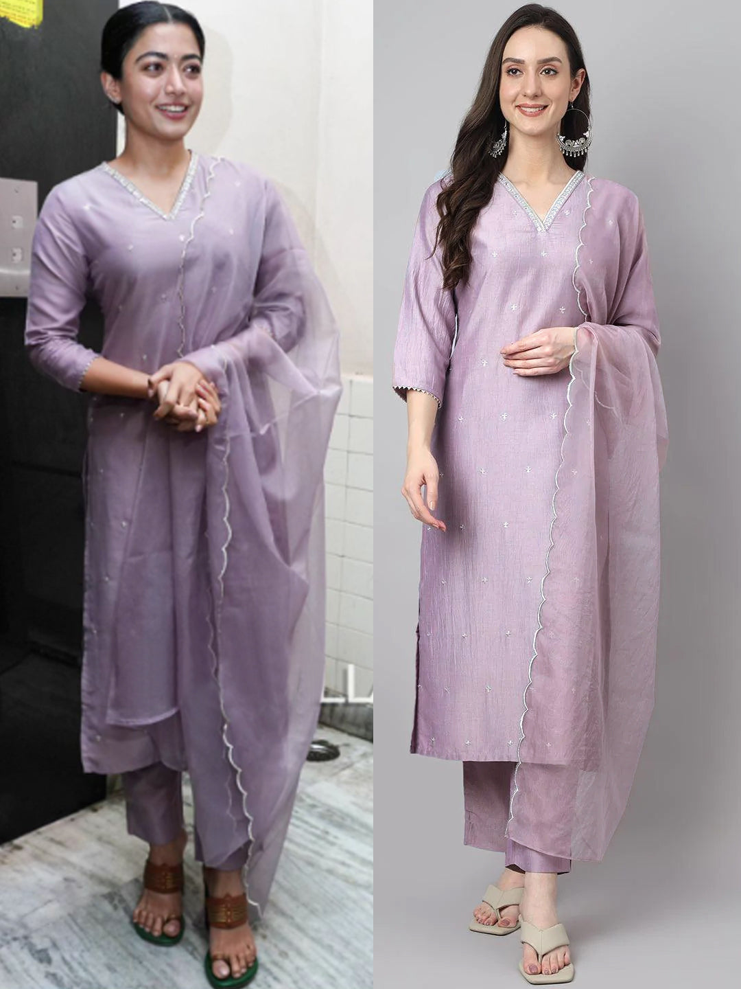 - Kurta Length: 46(inch),| Bottom Length: 37(inch) | Dupatta Color: Lavender|Kurta Color: Lavender | Pattern: Embellished | Occasion: Festive | Type: Straight | Sleeve Type: 3/4 Sleeves Regular Sleeves