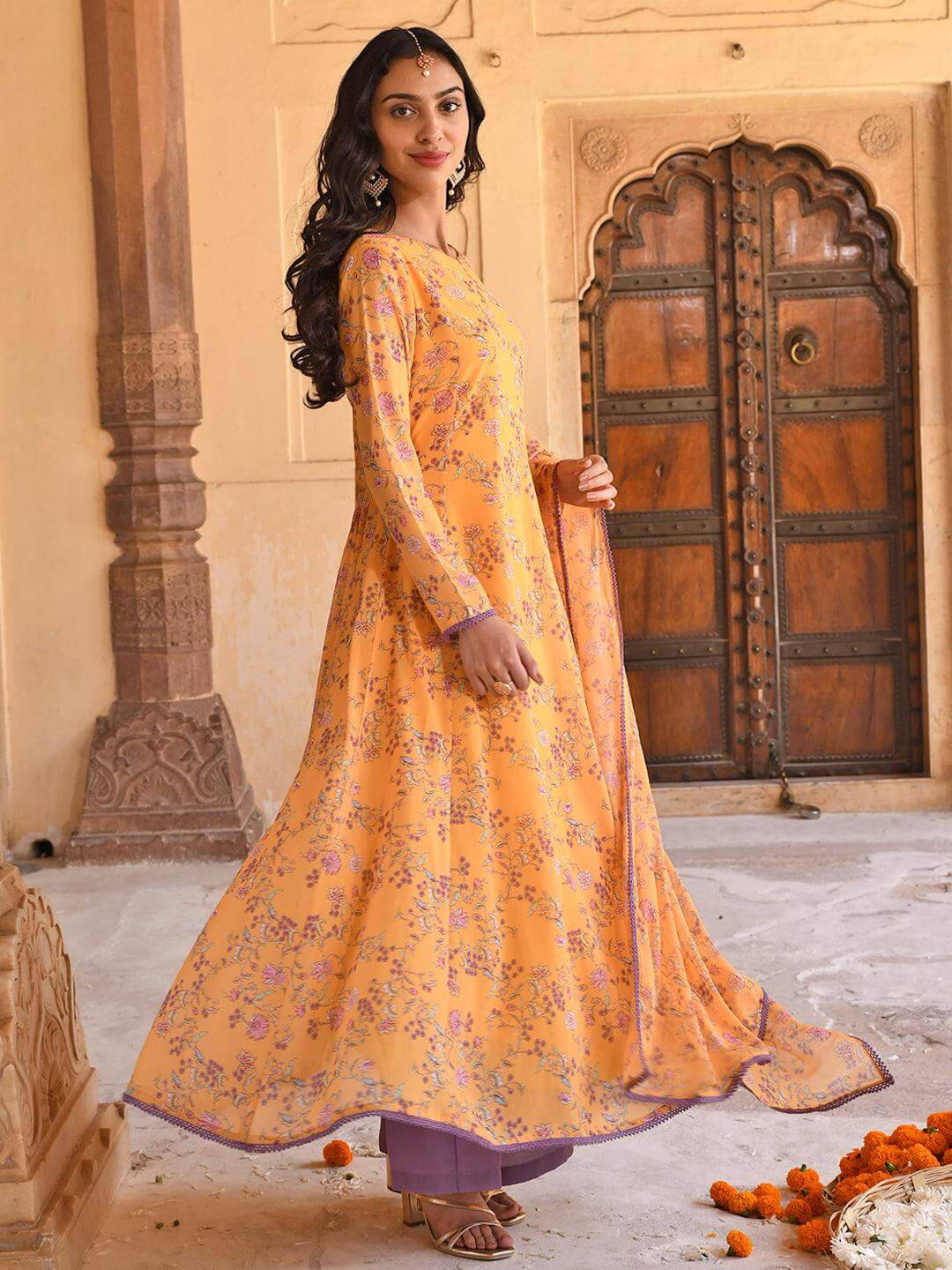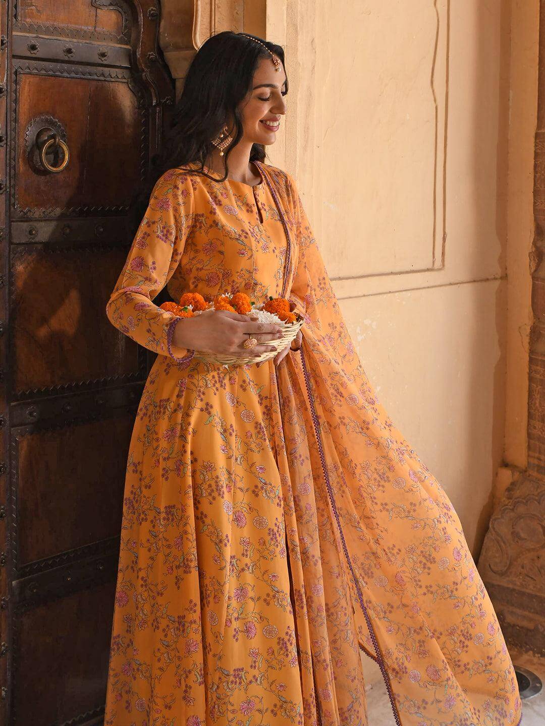 - Kurta Length: 51(inch) | Bottom Length: 39(inch) | Dupatta Color: Yellow | Kurta Color: Yellow | Pattern: Floral Printed | Occasion: Occasion | Type: Flared | Sleeve Type: Full Sleeve Full Sleeve